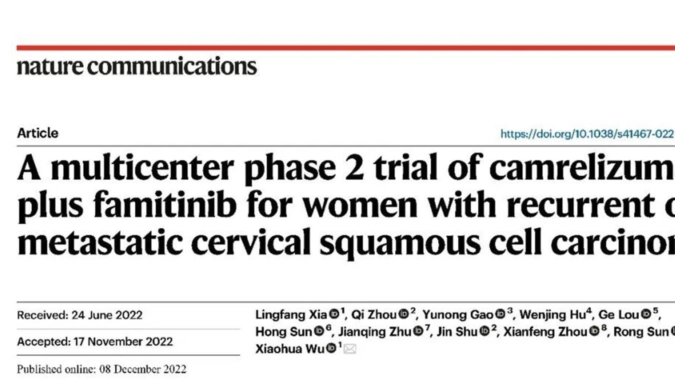 赢多多创新药卡瑞利珠单抗联合法米替尼用于复发或转移性宫颈癌研究结果荣登JCO
